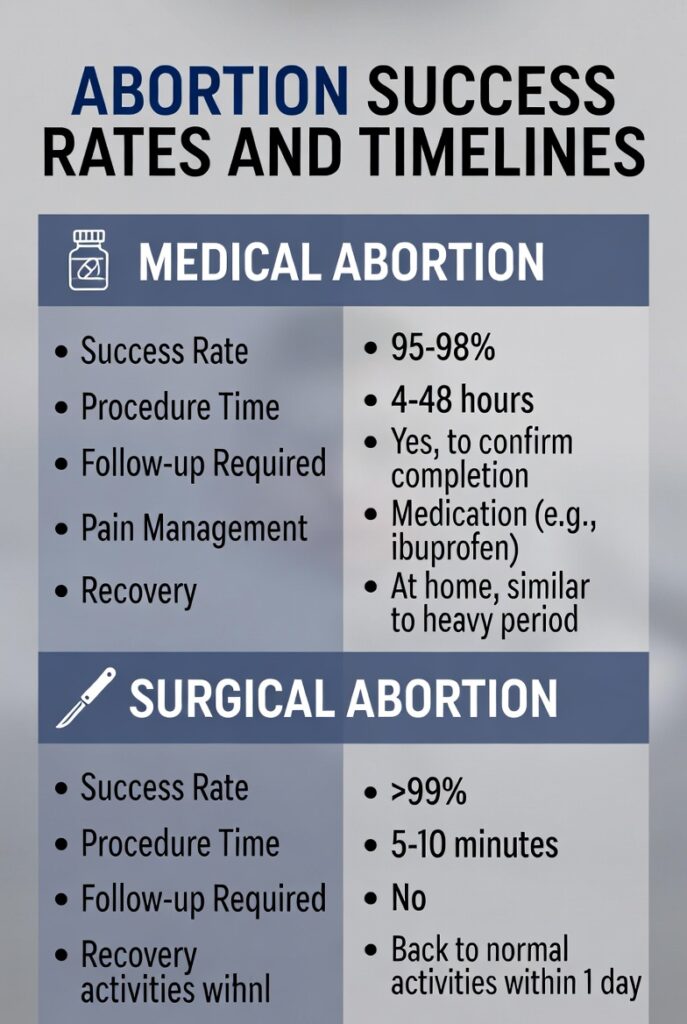 | Recovery | Quick, 1-2 days rest | Potential for incomplete abortion (rare, <5%) |